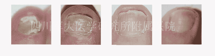 治疗后:后来经过慎重的选择考虑来到四川军大医学研究所附属医院治疗,医生采用“中医渗透软化疗法”对其进行治疗,一个疗程后,病甲开始脱落,并长出新甲。