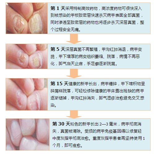 【治疗原理】中医渗透软化疗法利用美国奥林巴斯真菌检测仪器准确检测出细菌的形态、数量、颜色、种类,并进行精确定位,运用PC-微电脑药离子导入技术,促进大分子化为小分子,穿透甲板,稳定释放杀菌成份,迅速杀灭潜藏在甲板深层病菌。
