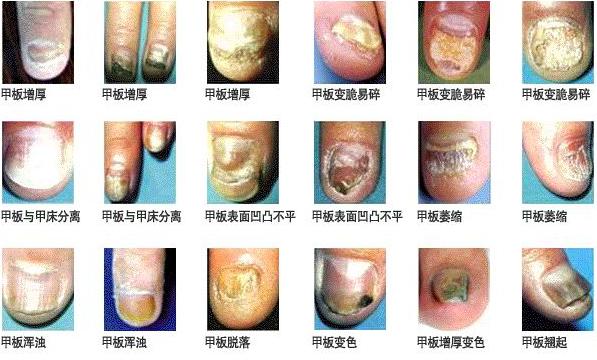 2、肥厚:甲下角质物堆积。