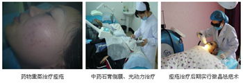 1.内服特制中药:采用抗敏固表、清热解毒、祛风除湿、疏肝理气、活血化瘀功效的中药,针对各种皮炎发生与分泌、皮脂分泌增加、毛囊导管角化过度、丙酸杆菌感染、环境因素、遗传因素及皮脂膜破坏,可同时达到排毒,杀菌,抑菌、修复受损细胞、恢复皮肤生态平衡、去痘不留痕的多重功效。