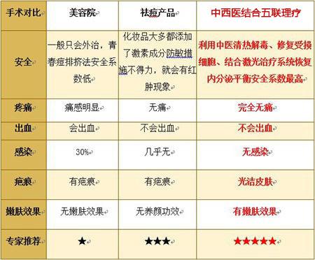美容院、祛痘产品、中西医五联排毒清痘疗法效果对比