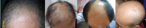 周先生,33岁,2012年开始在成都市自营一家公司,由于精神压力较大,而且经常要陪客户吃饭,烟酒不离。2013年他开始严重脱发,头屑很多,头发总是油腻腻的,一段时间后发际线明显提高很多。先后去过多家医院,自己也用过很多药,但是治疗一段时间没有效果就停药了,发展到现在头部分已经出现大面积没有头发,朋友们总是嘲笑我脑袋变成了地中海。