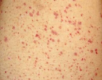 是最常见类型。主要表现为皮肤紫癜,复发生、对称分布,可同时伴发皮肤水肿、荨麻疹。紫癜大小不等,初局限于四肢,尤其是下肢及臀部,躯干极少累及。紫癜常成批反呈深红色,按之不褪色,可融合成片形成瘀斑,数日内变成紫色、黄褐色、淡黄色,经7-14日逐渐消退。