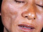 2、皮肤和粘膜:皮疹常见,约40%患者有面部典型红斑称为蝶形红斑.