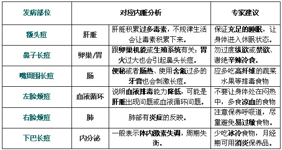 青春痘的发病跟患者体内脏腑的健康状况有着极密切的联系。要想祛痘,必须先了解不同部位的青春痘分别代表哪部分脏腑出了问题,才能针对性的有所调节和治疗,的皮肤病医师为大家做了一下分析并给出科学的调理建议。
