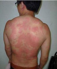 孙医师向记者讲述了小伙子左少的治疗过程。六天前,左某来到孙光选医师诊室,当把上衣服脱掉进行检查时,全身的红斑块,从脖颈处到小腿,到处都是,着实让人大吃一惊。检查一番后,孙医师问左某知道自己患的是什么病吗?左某说现在浑身上下又痒又烫,他猜测可能是得了湿疹或者过敏性皮炎。