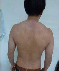 当我再次看到左少时,是在四川军大孙光选医师见到了做复诊检查的荨麻疹性血管炎患者左少(化名),褪去上衣,左少的皮肤已是正常人肤色。但是看了他治疗前的病历照片,两相对比,仍让人吃惊不已。