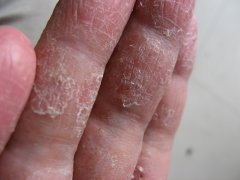 后到当地皮肤病医院,当地大夫诊断为:掌趾脓疱病,给予膏药治疗,用了之后特见效,心里非常高兴;可是没过几天就又复发了,接着抹药膏;就这样反反复复,最后抹膏药也不管用了,而且面积也扩散了,并感染到手部。脚部、手部非常痒,越痒越抓,越抓越痒,经常挠的出血也不解恨,尤其是到晚上痒的厉害,严重影响了睡眠质量,实在是痛苦!